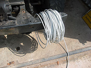Mein Nachbar hat mir freundlicherweise den Schlüssel für die Garage mit dem Stromanschluß anvertraut, sodass mein Kumpel und ich uns erstmal daran machen, die Stromquelle für die Anbindung vorzubereiten.