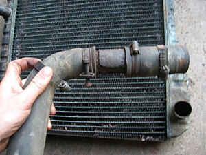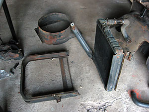 Der Kühler ist ganz schön hinüber. Wenn man das Kühlergitter eindrückt zerbröselt es wie ein verbranntes Stück Pappe.