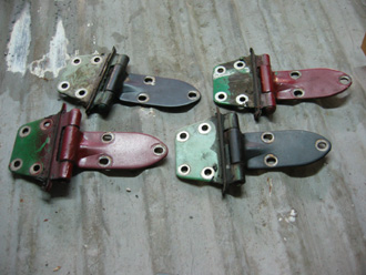 Anschließend werden dann in mühsamer Fummelarbeit die drei restlichen Türscharniere abgeschraubt und ich hoffe, dass ich sie mit den eingegangenen Tips der letzten Woche auch auseinanderbekomme.